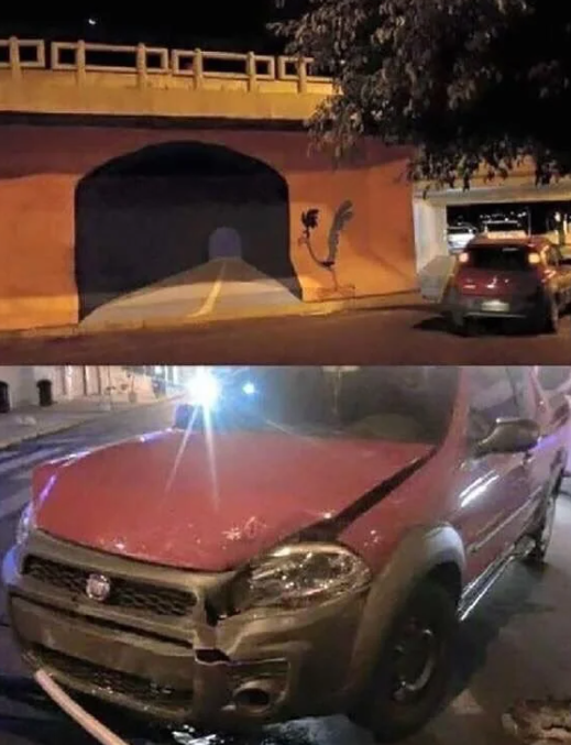 6. Lukisan meresahkan ini hampir menghilangkan nyawa pemilik kendaraan gegara disangka terowongan beneran