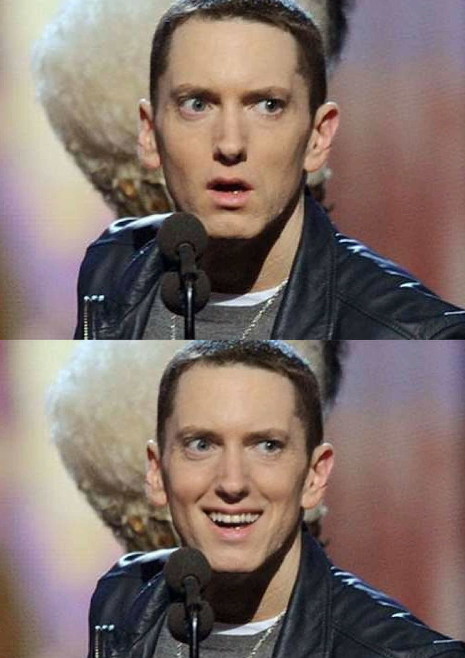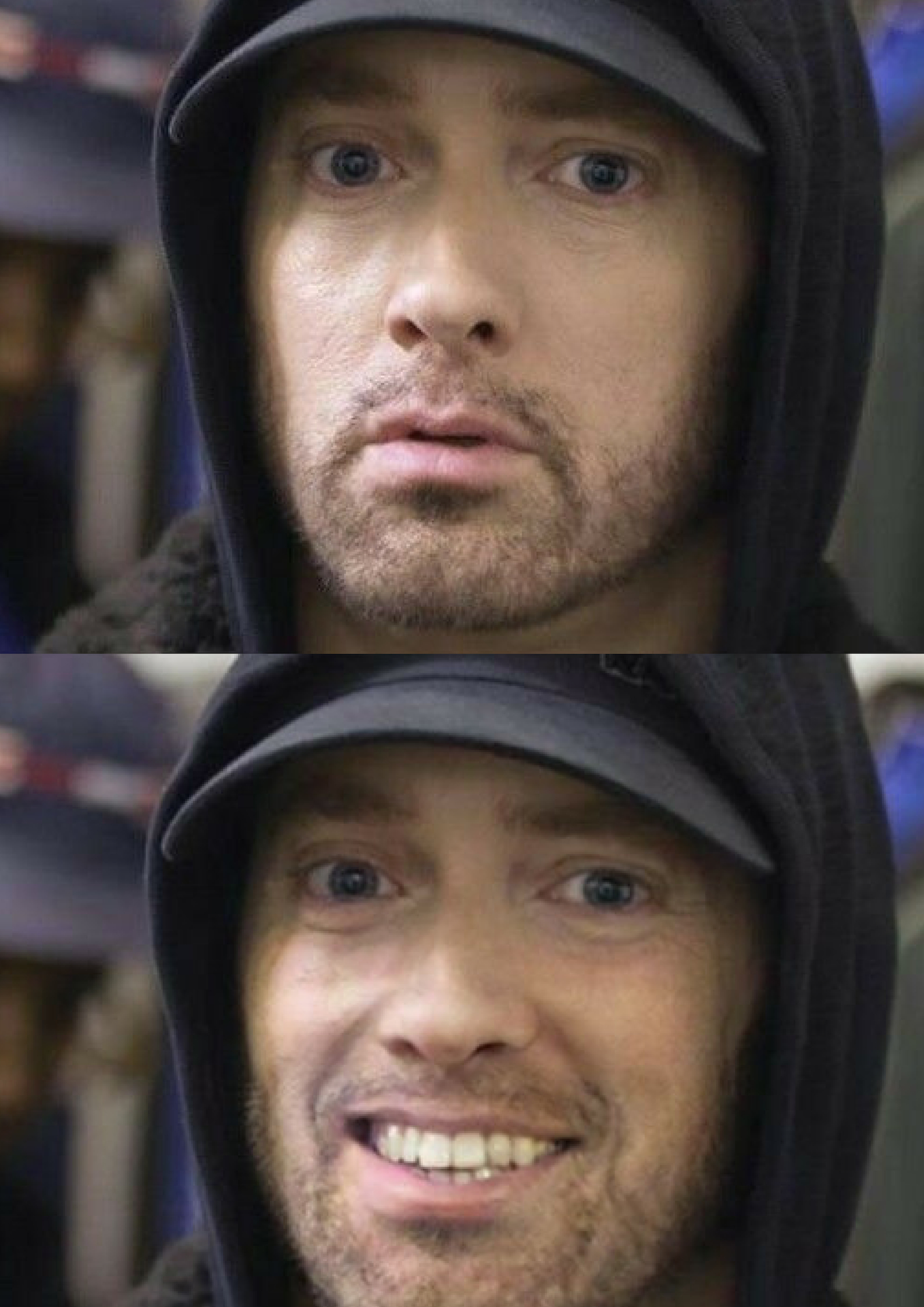 Yang Penting Heppiii. Kalau kamu perhatikan, saat kamu search Eminem di Google, mayoritas gambar yang muncul adalah posenya yang nggak pernah senyum. Apa itu memang kepribadian sang rapper, atau ia sesungguhnya anti mengekspresikan kegembiraan secara fisik. Tentu hal ini memicu rasa penasaran banyak orang dong ya. Nggak terkecuali sama Mike Brown, seorang seniman photoshop yang jeli melihat fenomena ini. Mike pun memutuskan untuk akhirnya melakukan sesuatu tentang wajah Eminem, yang mana nggak pernah dilakukan orang lain sebelumnya. Hasilnya? Epik! Lihat aja sendiri.