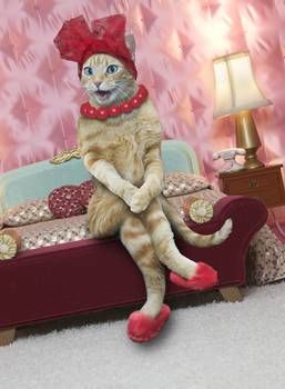 Bukan cuma kostum, duduknya pun diatur, dan kucing ini mau-mau aja.