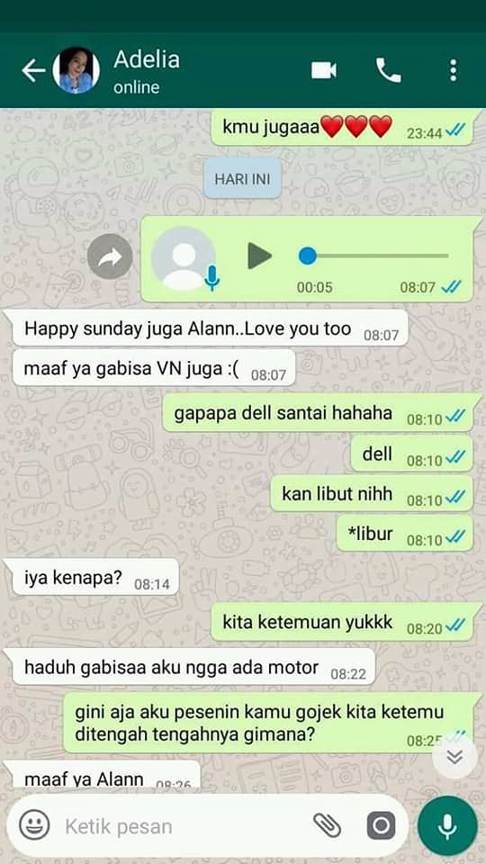 Adelia yang lebih dulu menghubungi Alan melalui WhatsApp.