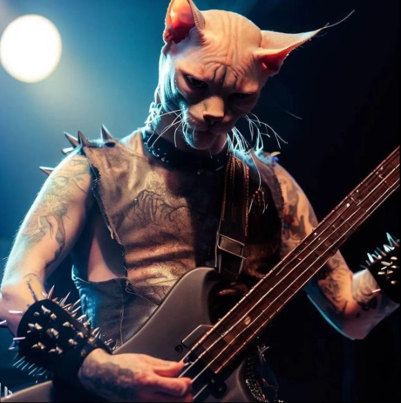 - Si meong bass dari band Guns N' Meows.