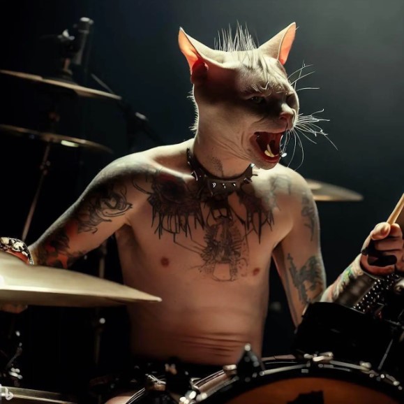 - Ngeri juga ya kalau kucing jadi drummer band metal.