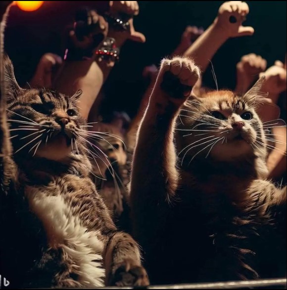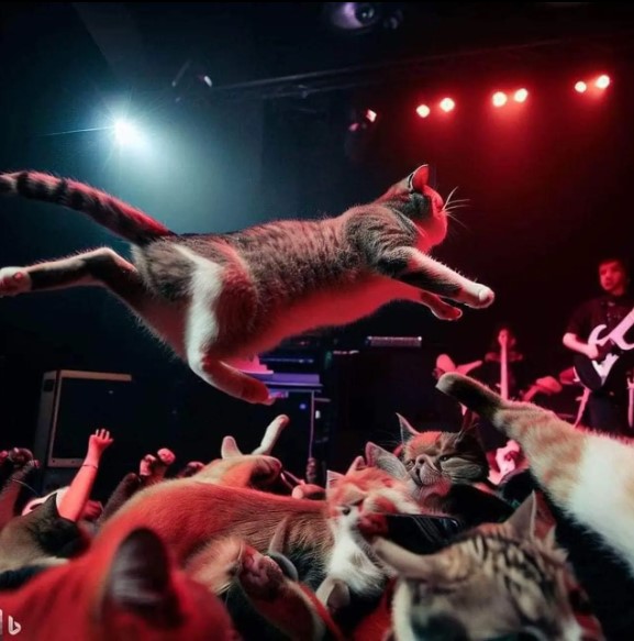 - Nah, kalo ini kucing diedit jadi penonton musik metal.