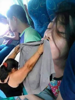 Pasti kalian pernah tidur dalam perjalanan jauh. Tidak terkecuali dengan cewek ini yang sedang tertidur pulas di dalam bus. Teganya lagi, temannya mengabadikan momen langka cewek ini yang lagi 'mangap' atau membuka mulutnya lebar-lebar.