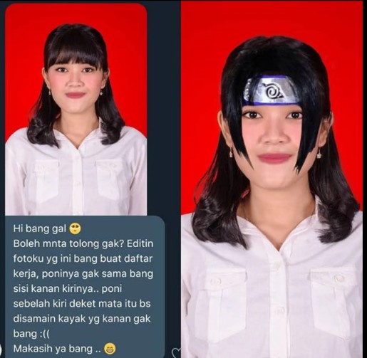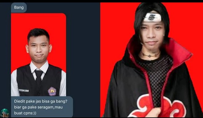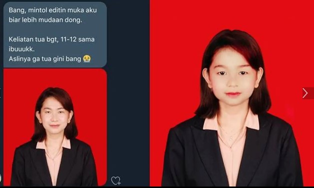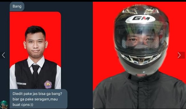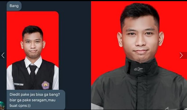 Pas foto berlatar belakang merah, menjadi salah syarat dokumen yang harus diunggah untuk mendaftar CPNS. Banyak para pelamar pun menyiapkan foto terbaiknya untuk ikut mendaftar CPNS tahun ini. Dari sekian banyak pelamar, ada pula yang ingin sedikit merubah fotonya.Mulai dari busana yang dikenakan, hingga gaya rambutnya yang tidak simetris. Merubahnya ini menggunakan jasa edit tapi hasilnya malah kocak, Yuk simak!