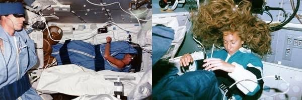 Tidur juga bisa jadi cukup merepotkan di luar angkasa. Selain tempat yang sangat sempit, nggak adanya gravitasi juga bikin astronot tidur melayang-layang, dan berpindah dari tempat awal mereka tidur karena terdorong oleh nafas mereka sendiri. Tapi bagusnya, nggak ada dengkuran di luar angkasa.