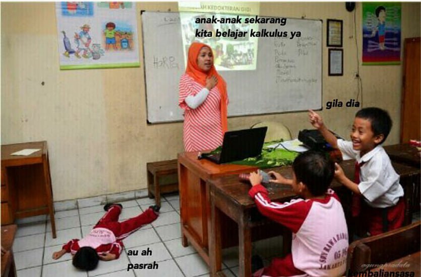 Kocak kan? Bukan bermaksud ngetawain guru, tapi ngetawain kenangan yang pernah ada. Jangan lupa untuk mengingat jasa guru-guru yang udah mengajar kita sampai saat ini!
