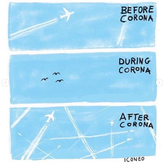 3. Sebelum dan sesudah corona langitnya penuh dengan pesawat.