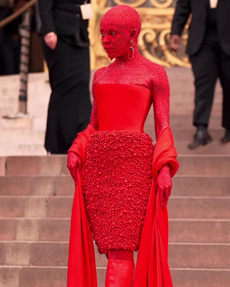 - Irina Shayk juga tampil mengenakan gaun berkepala singa
