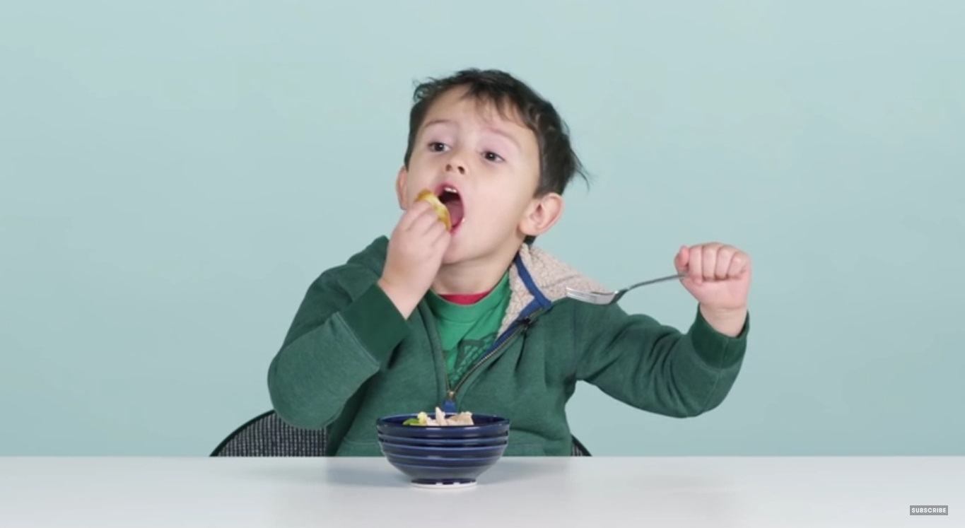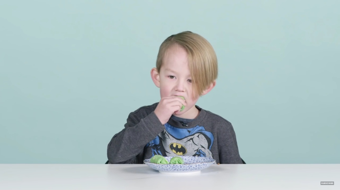 Awalnya anak ini ragu buat nyicipin kue dadar gulung, tapi ketika mencoba dia justru malah ketagihan karena isi dari dadar gulung yang lezat.