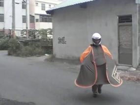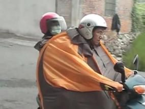 Yang Penting Heppiii. Jas hujan ruang angkasa yang berfungsi sebagai jas hujan buatan Taiwan ini jauh berbeda dengan jas hujan yang kita pakai selama ini. Kalau yang selama ini berbentuk menyerupai setelan baju, atau berupa jubah, jas hujan ruang angkasa ini lebih unik. Bentuknya yang menyerupai tenda bikin orang yang memakainya terlihat lucu.