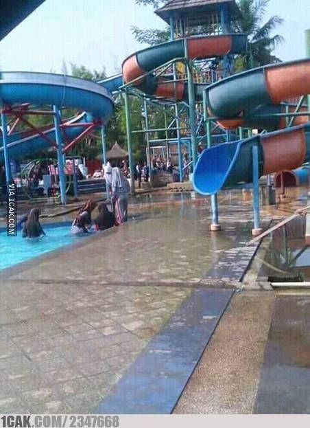 Main perosotan di air sih emang asyik ya, tapi kalo pantat jadi sakit, kayanya nggak usah deh.