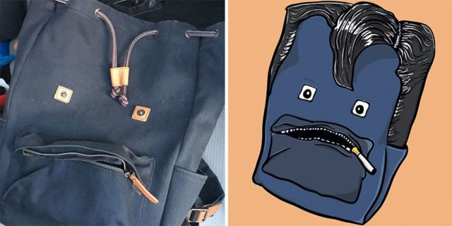 Ini cuma tas, tapi di mata seorang pareidolia ini seperti bad boy. Wah kreatif ya