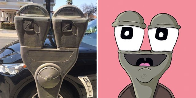 Yang Penting Heppiii. Pernah nggak sih kamu melihat suatu objek yang ada di sekitarmu seperti menyerupai mahkluk hidup? padahal itu hanyalah benda mati biasa. Fenomena psikologis ini disebut pareidolia. Penasaran kan kayak gimana sih mata seorang pareidolia dalam melihat benda-benda mati? Yuk kita simak karya seniman desain grafis bernama Keith Larsen.