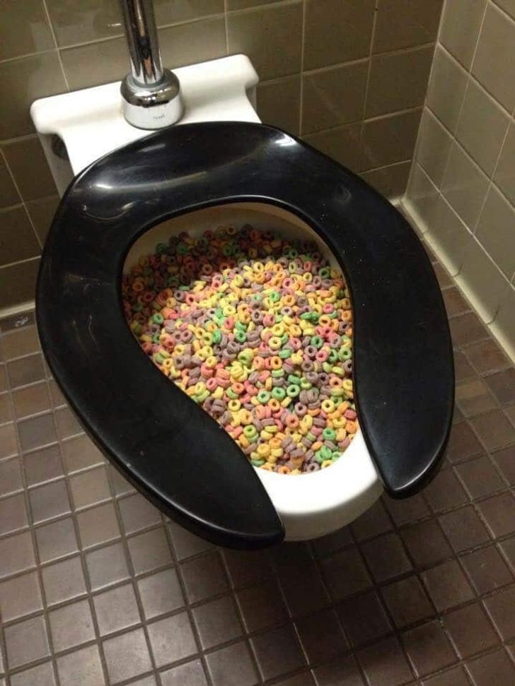 Ada masalah apa sampe nuang cereal ke toilet ya?
