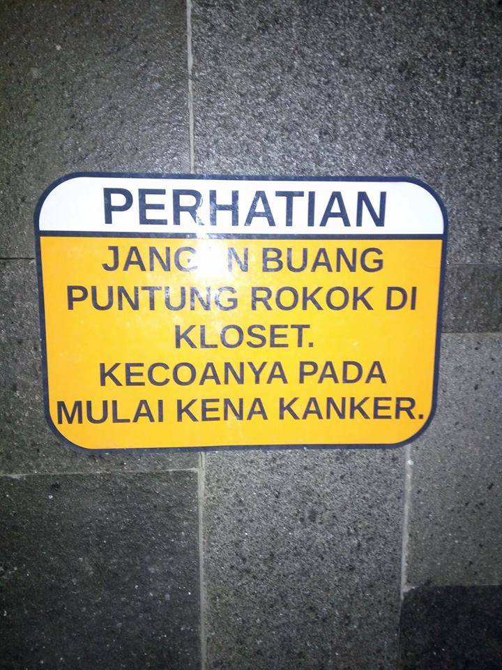 - Nah lho, tanggung jawab yang buat puntung rokok ke closet.