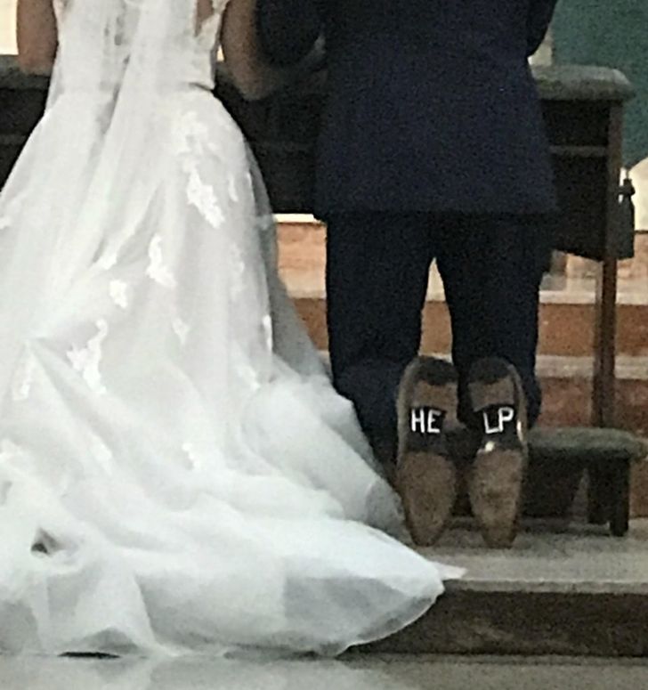 Pria ini sengaja menuliskan kata “help” di bawah sepatunya, tepat di hari pernikahannya.