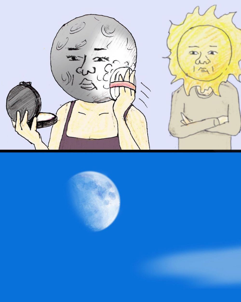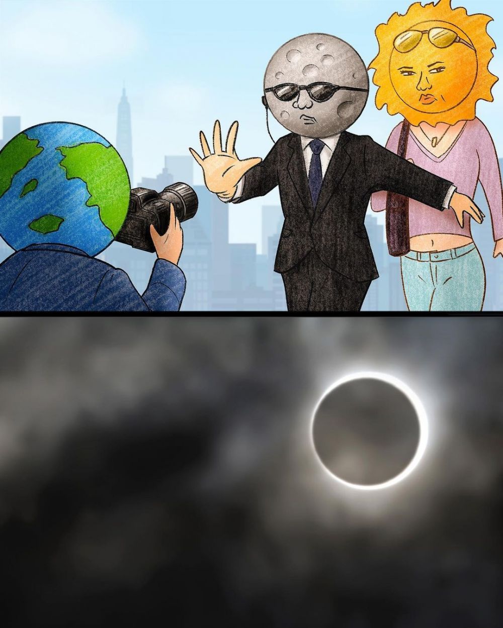 Fenomena langit terjadi akibat pergerakan dan aktivitas benda-benda yang ada di alam semesta. Gerhana matahari terjadi ketika posisi bulan berada tepat di antara matahari dan bumi. Namun komikus asal jepang Bernama Keigo ini memiliki imajinasi jika tata surya memiliki kehidupan seperti manusia. Hal tersebut sukses bikin netizen kita melongo dan senyum tipis melihatnya, penasaran? Yuk cek aja langsung.