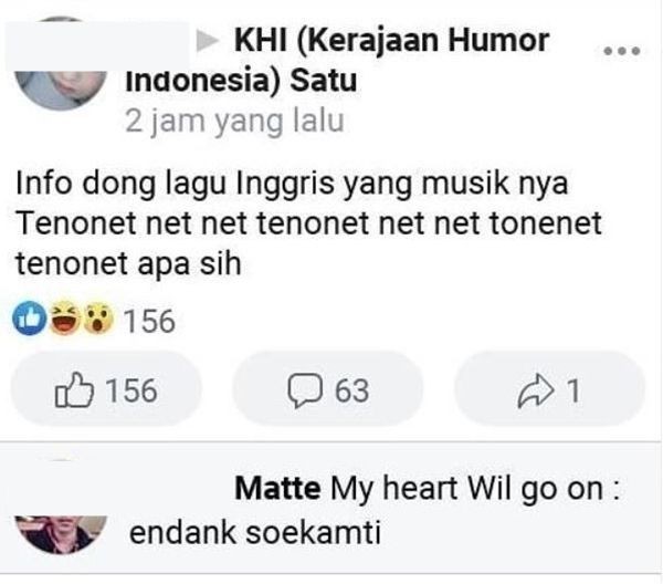 Yang Penting Heppiii. Kamu pasti pernah dengerin lagu trus tiba-tiba lupa judulnya. Meskipun udah diinget-inget, tetep aja nggak inget. Mau Googling pun susah, akhirnya dengan clue seadanya, nanya temenlah solusinya. Jatuhnya malah jadi kaya ngajak ribut dah. Lihat deh.