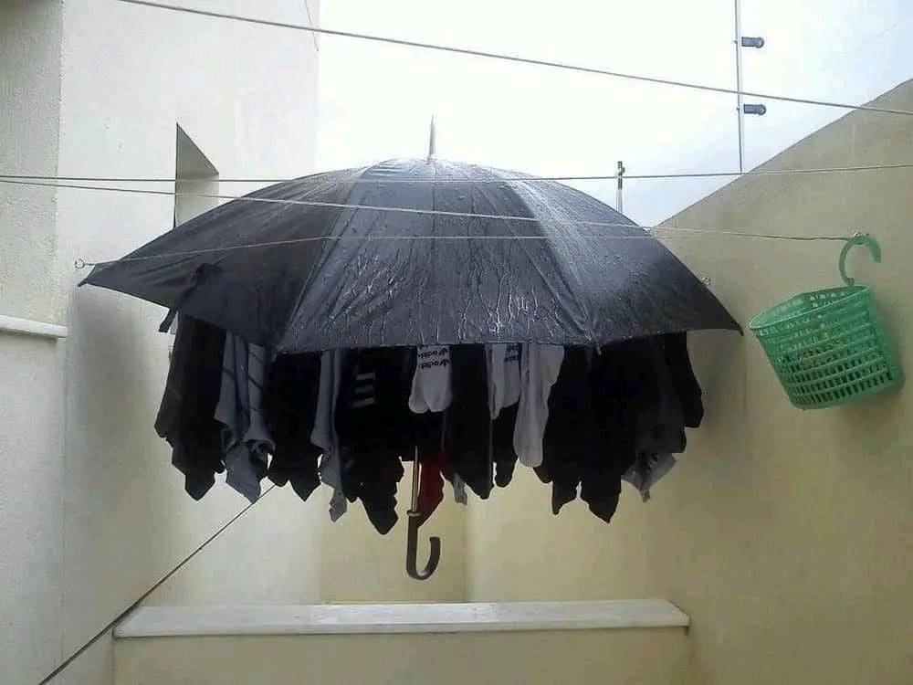- Cara simpel biar baju nggak kehujanan pas dijemur.