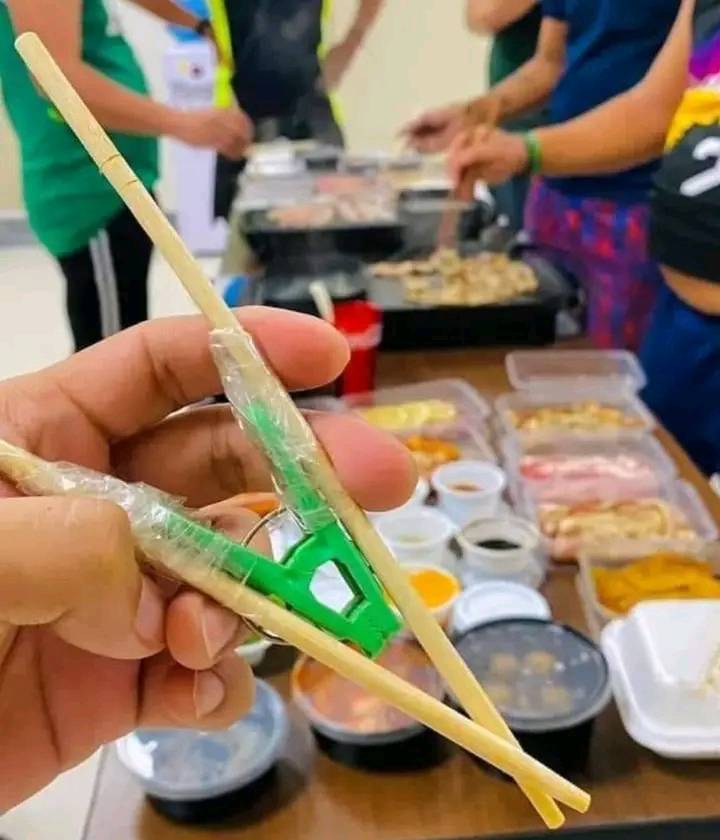- Buat yang nggak bisa pakai sumpit, pakai cara ini aja.