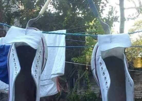 - Jemur sepatu tanpa penjepit baju.
