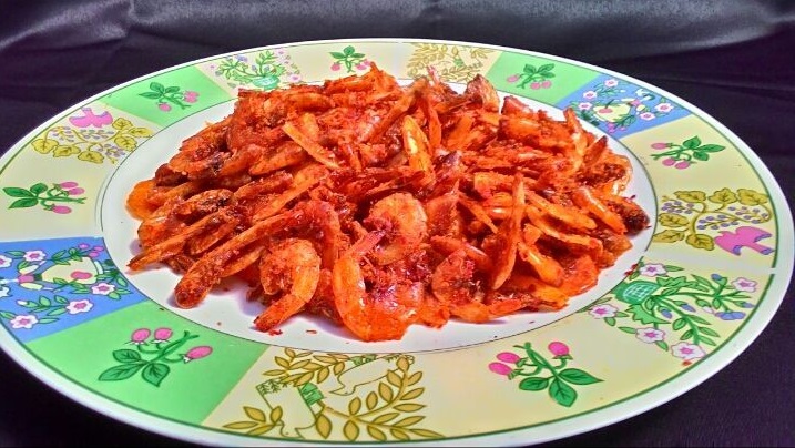 Untuk membuatnya, butuh udang laut yang kecil dan dibumbui rempah. Keripik ini baik untuk regenerasi sel merah lho!