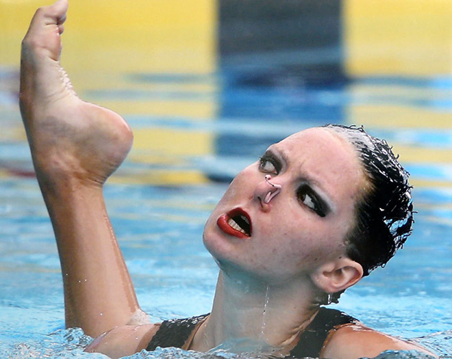 Yang Penting Heppiii. Nggak diragukan lagi, renang indah itu nggak mudah. Mereka harus melompat, menari, mengingat koreografi, yang semua harus dilakukan secara kompak bersamaan, di dalam air! Gokil nggak tuh, kebayang kan gimana hebatnya para perenang indah ini. Tapi yang mungkin jarang kamu perhatikan, ekspresi para atlet ini ternyata nggak seindah gerakannya. Kadang aneh banget, jadinya kocak bukan main.