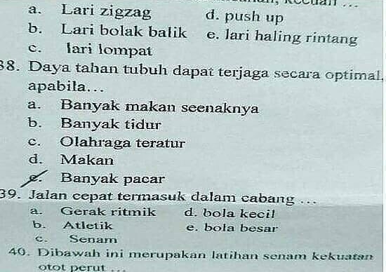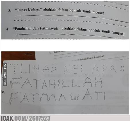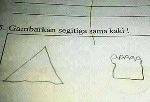Yang Penting Heppiii. Hubungan murid dan guru tuh memang unik, semacam love and hate relationship. Kadang murid bisa nurut banget sampe guru rela muji-muji, ada kalanya juga murid bikin guru kesel dan ngelus dada. Salah satu yang bikin guru kesel yaitu saat meriksa jawaban soal ujian. Bukan apa-apa, kalau udah nggak bisa jawab, kreatifitas murid biasanya naik 50%, jawabannya unik-unik banget. Yuk langsung aja lihat di bawah ini!