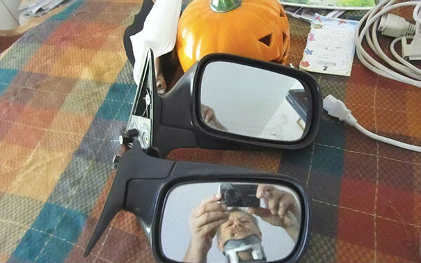 Ketika mobil abis nabrak tiang listrik, dan yang tersisa cuma spion.