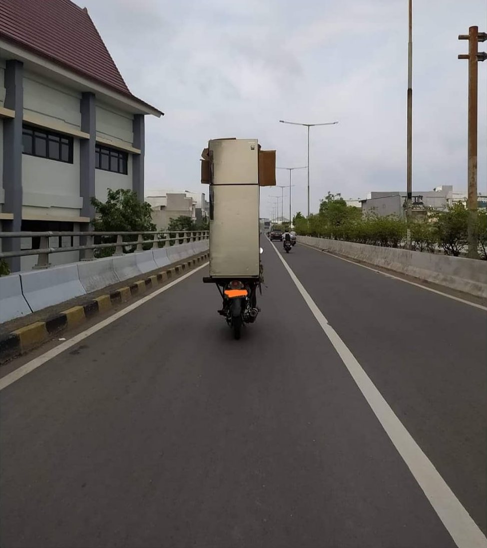 Yang Penting Heppiii. Kalau udah milih profesi jadi tukang ojol, pastinya bakal paham semua resikonya dong, termasuk dapet orderan kirim barang tapi jumlah dan ukurannya nggak masuk akal. Yah mau nggak mau harus tetep diantar, daripada cancel malah nggak ada pemasukan.