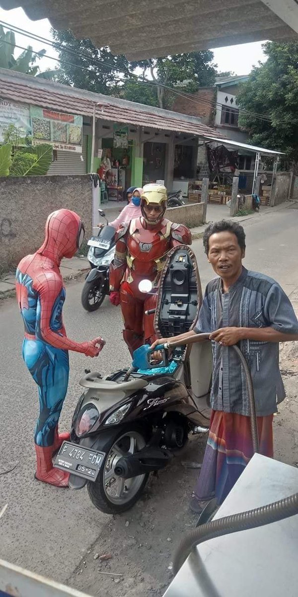 Yang Penting Heppiii. Udah pada tahu semua dong sama tokoh superhero dunia. Mungkin buatmu biasa aja, tapi pernah nggak sih kepikiran gimana kalau mereka tinggal di Indonesia. Beres nangkep penjahat, kan jadi nganggur tuh, kira-kira apa yang mereka lakukan ya? Seru juga kayanya kalo para superhero ini punya kegiatan kaya orang lokal, seperti yang berikut ini. Cekidot.