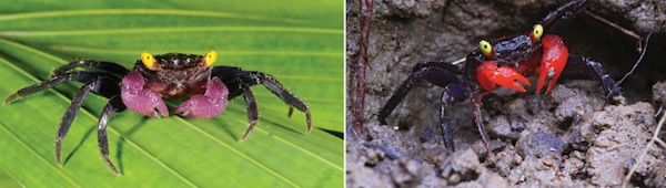 Di Jawa, Indonesia ada dua spesies kepiting yang baru ditemukan. Salah satunya punya cakar ungu yang unik sementara yang lain punya jepit berwarna oranye yang menyala-nyala. Keduanya punya mata kuning seram yang bikin penampilan mereka mirip vampir. Dua kepiting baru ditemukan di sepanjang lereng bukit oleh sekelompok peneliti yang dipimpin oleh Peter Ng dari Universitas Nasional Singapura. Tim tersebut menamai kepiting ungu dengan nama Geosesarma Dennerle dan satu lagi yang berwarna oranye, Geosesarma Hagen.