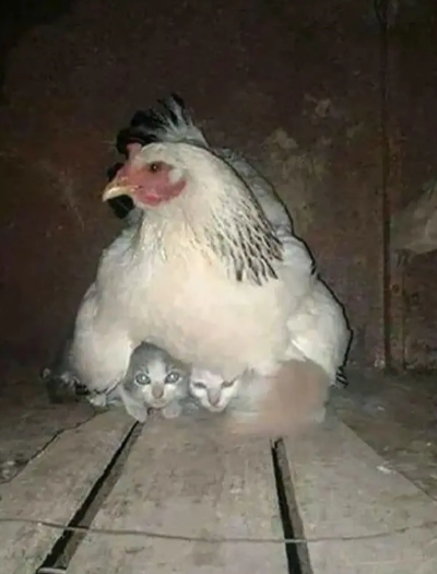 - Lah, anak kucingnya beneran dierami dong.