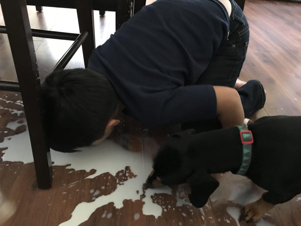 - Setidaknya dia sudah berusaha menuang susunya sendiri ke dalam gelas