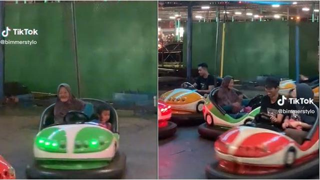 Media sosial diramaikan dengan konten kocak berupa aksi nenek-nenek yang lincah bermain bombom car. Tingkah kocak nenek naik bombom car itu langsung bikin warganet terhibur sekaligus geleng kepala. Banyak warganet yang ikutan ngakak dan menyoroti ekspresi cucu dari sang nenek yang tampak ketakutan.