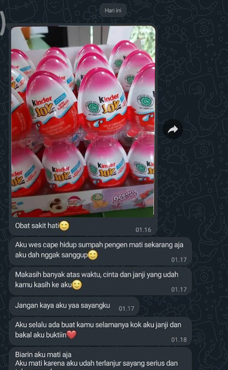 - Ini sih bocah yang patah hati kayanya sampai makan Cokelat kinder Joy