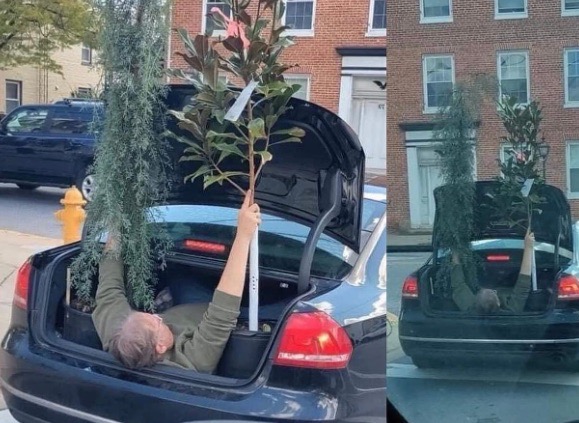 - Bisa-bisanya di jalan ketemu bapak-bapak random pegangin dua pohon di bagasi mobil sambil terlentang