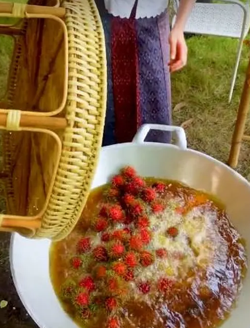 2. Rambutan ini digoreng dengan kulitnya, rasanya disebut menjadi lebih juicy