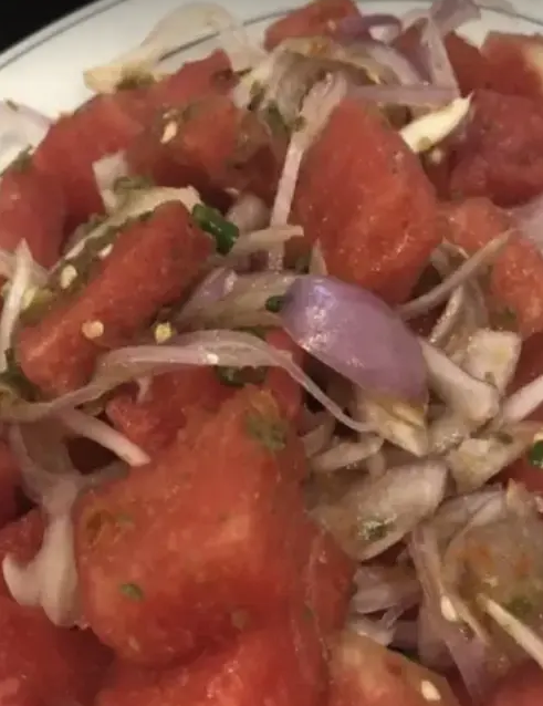 6. Semangka tumis, rasa manis dicampur dengan asam dan daun bawang yang menyengat