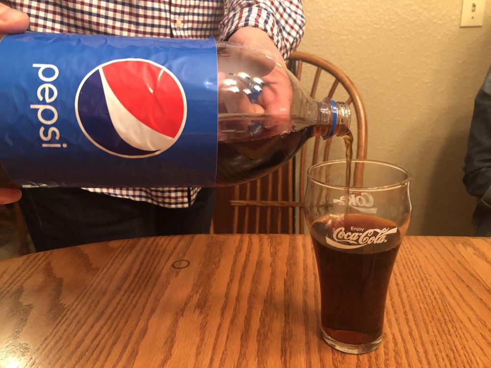 - Gelasnya Coca-Cola, tapi minumannya Pepsi. Suka-sukalah!