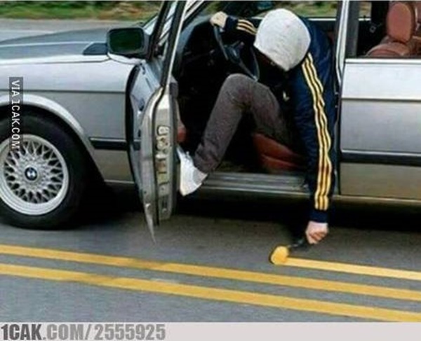 - Mantan pembalap kalau disuruh ngecat jalanan begini