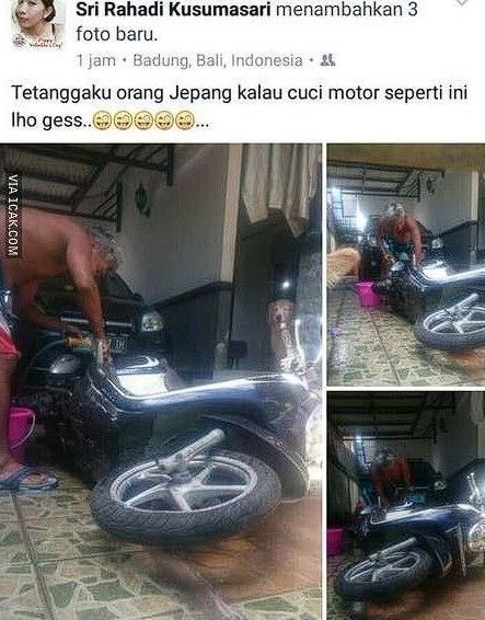 Namanya kendaraan pasti ada saja Debu, kotoran atau bahkan noda yang menempel pada motor. Salah satunya solusinya sepeda motor harus dibersihkan, tapi kalau bersihkannya dengan cara seperti dibawah ini kira kira gimana ya?