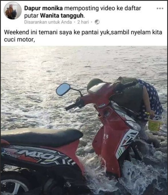 - Kalau ini lebih nyeleneh lagi. Cuci motor di laut. Auto rusak dong motornya.
