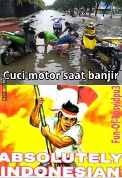 - Banjir bukannya ngungsi, eh malah cuci motor.