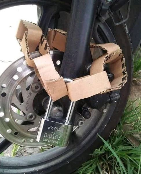 - Sungguh rantai gembok yang sangat aman dari maling, bukan?