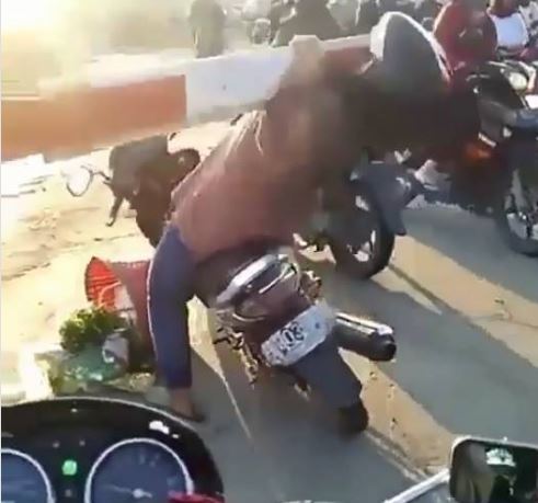 Tuh akibatnya kalau nggak menghiraukan palang pintu kereta api. Orang Jawa menyebutnya, nggeblak.
