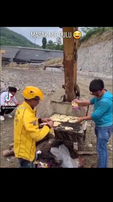 - Masak mie di ekskavator?