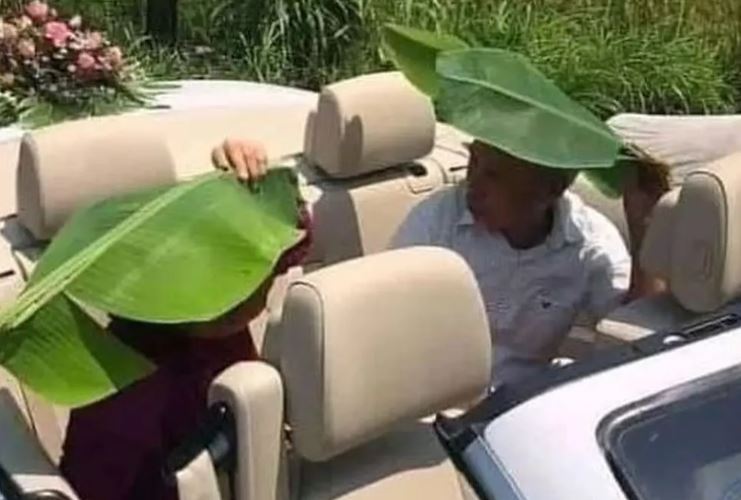 Yah mobil udah oke kok malah pake daun pisang.