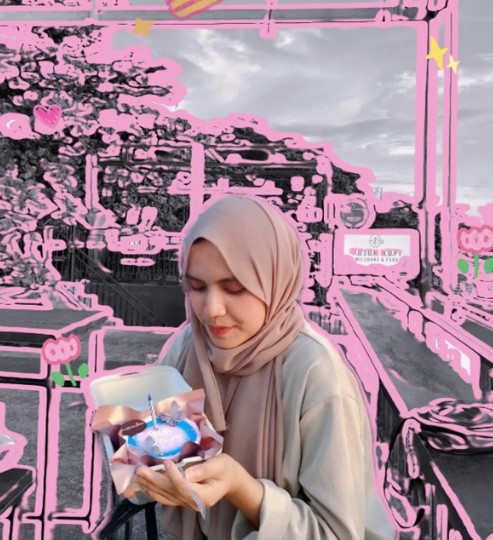 - Konsepnya adalah menebalkan garis pada foto dengan menggunakan tinta merah muda
